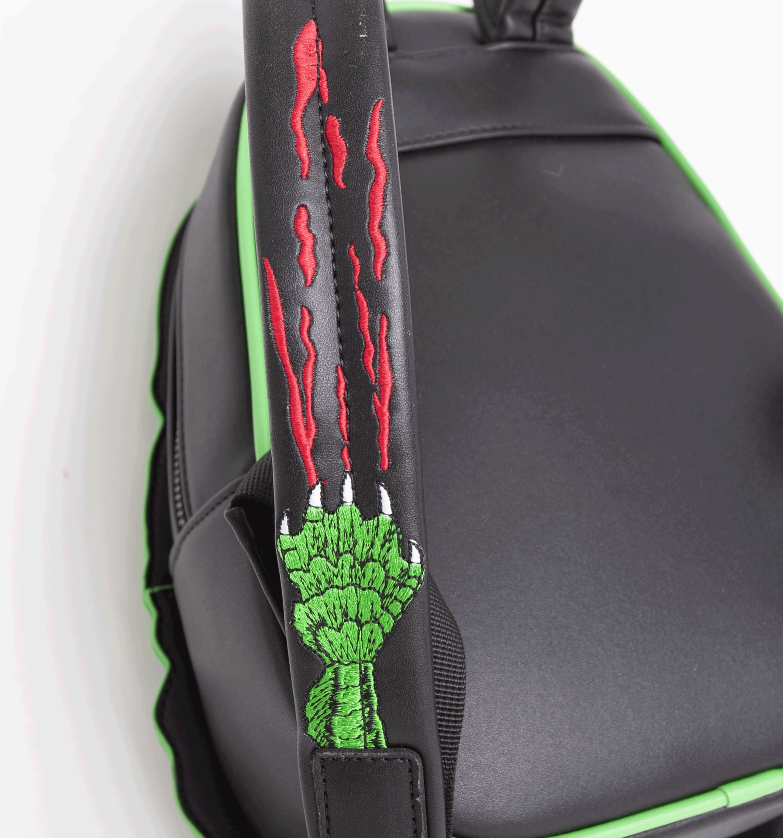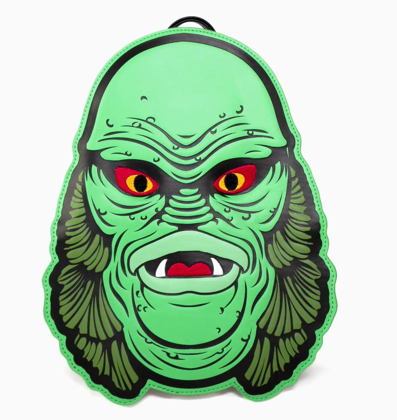 Officially licensed Creature from the Black Lagoon backpack. Made from high-quality PU leather, this backpack features custom embossed and embroidered details that truly bring the iconic creature to life. The custom glow-in-the-dark zipper pulls add a touch of uniqueness, while the new custom embroidered claw straps complete the look. Perfect for any horror movie lover, this backpack is a must-have accessory for those who want to make a statement. L: 9" x W: 4" x H: 11.5"
