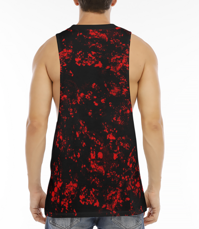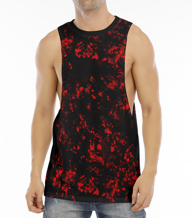This is a soft jersey tank top with a long torso. Deep cut arm holes let you show off your bicep guns while giving you lotsa room to work out.
