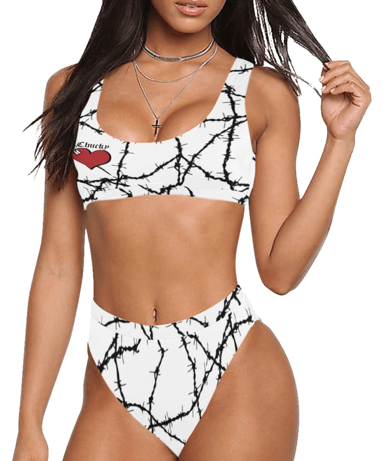 This bikini features a high waisted bottom and a tiny lil top that you know Jennifer Tilly would totally rock.